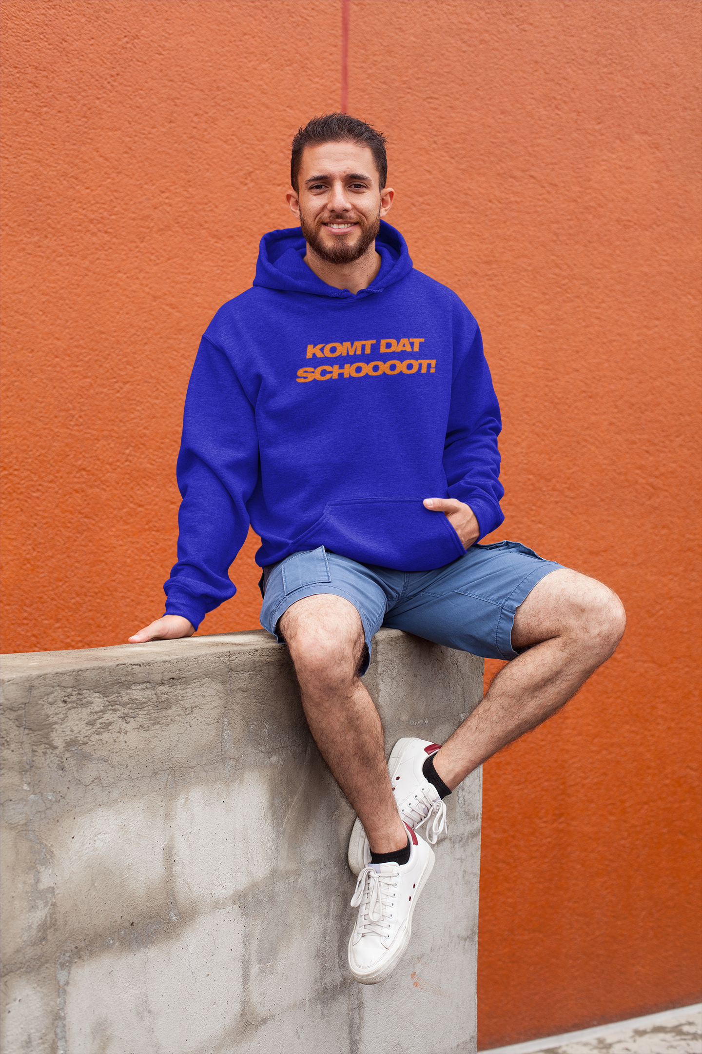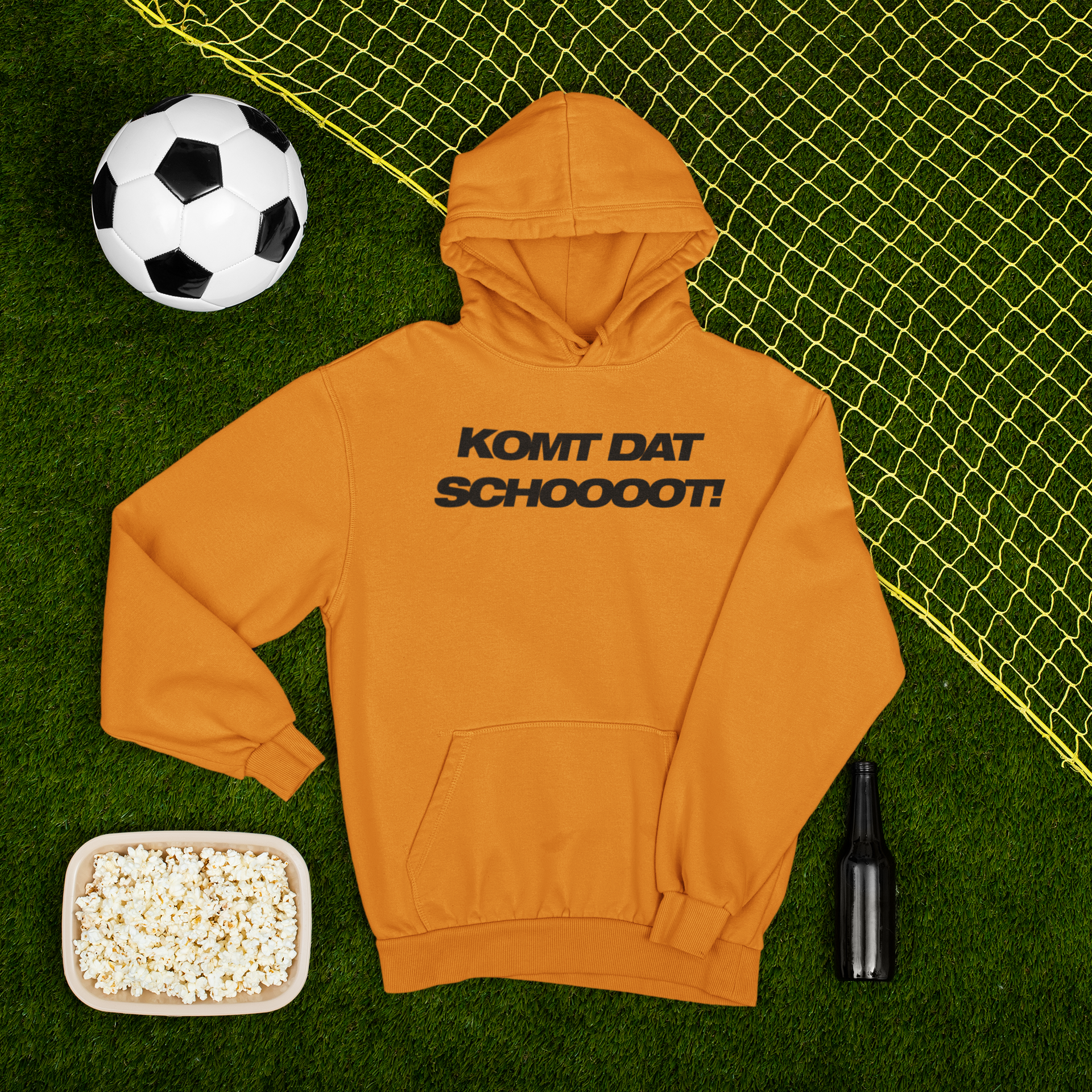 Komt dat schot, KOMT DAT SCHOT, KOMT DAT SCHOOOOT. Gooi je geluksonderbroek maar weg, voortaan heb je alleen onze 'KOM DAT SCHOOOOT' hoodie nodig voor de spannendste Oranje wedstrijden.