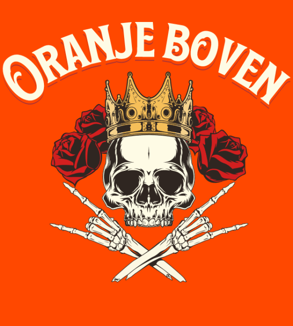 Koningsdag Trui Oranje Boven Skull. Verkrijgbaar in de maten XS t/m 4XL