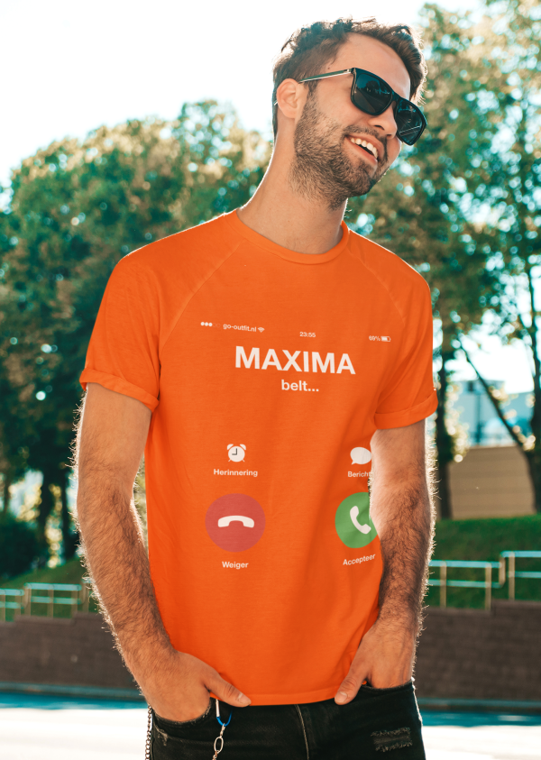Tijdens koningsdag maak jij indruk met dit unieke heren T - shirt Maxima belt.. Verkrijgbaar in oranje en zwart. Dit T - shirt is leverbaar in de maten XS t/m 5 XL , dus altijd passend. Welke maat jij ook hebt, jij maakt indruk met dit Premium T - shirt. Bekijk de maattabel onderaan de pagina voor de juiste maat.