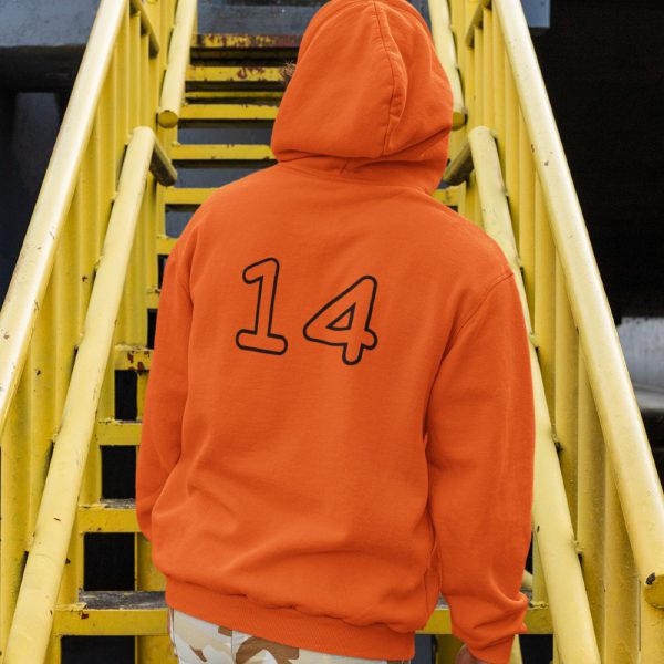 Steun je favoriete speler tijdens wedstrijden van het Nederlands team met deze hoodie met speciaal rugnummer. Met deze hoodie laat jij zien wie je favoriet is! De uniseks hoodie voor dames en heren is verkrijgbaar in de maten XS t/m 4XL. Het lettertype dat gebruikt wordt is Taurus Mono Outline Bold. Maak gebruik van de maattabel onderaan de pagina voor de juiste fit.