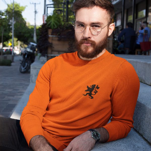 Prachtige sweater met black lion op de borst. Ideaal voor alle oranje evenementen. Met deze sweater ben jij altijd in de juiste stemming om een feestje te vieren! Deze uniseks model sweater is verkrijgbaar in de maten XS t/m 4XL. Check de maattabel onderaan de pagina voor de juiste maat.
