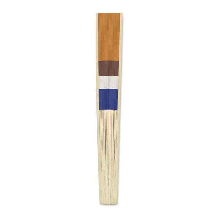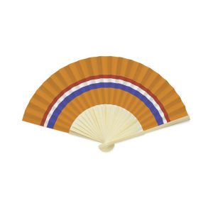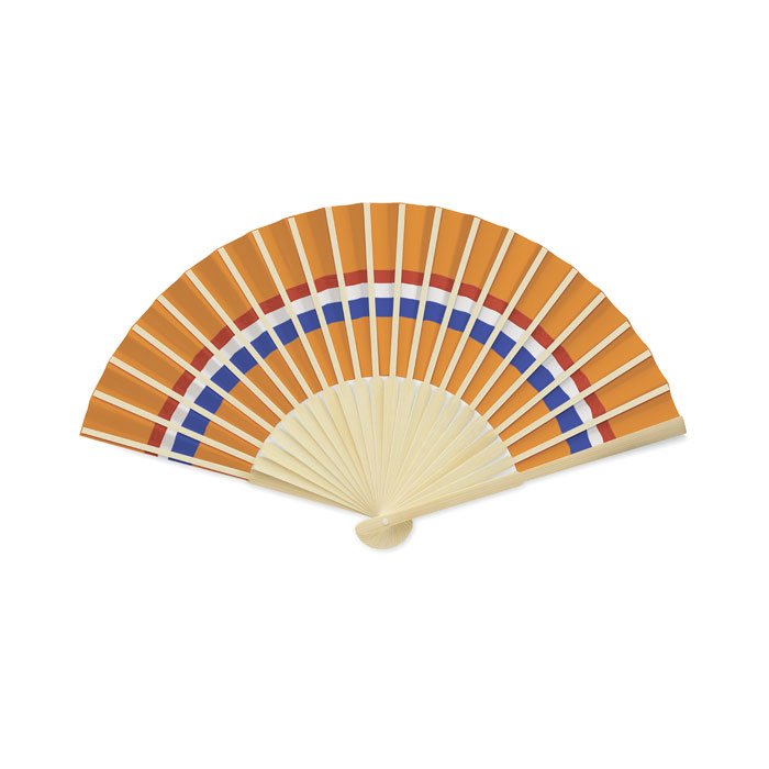 Waaier van bamboe met vlagontwerp op papieren stof. Dit is de ideale oranje accessoire die verkoeling biedt op een warme dag!