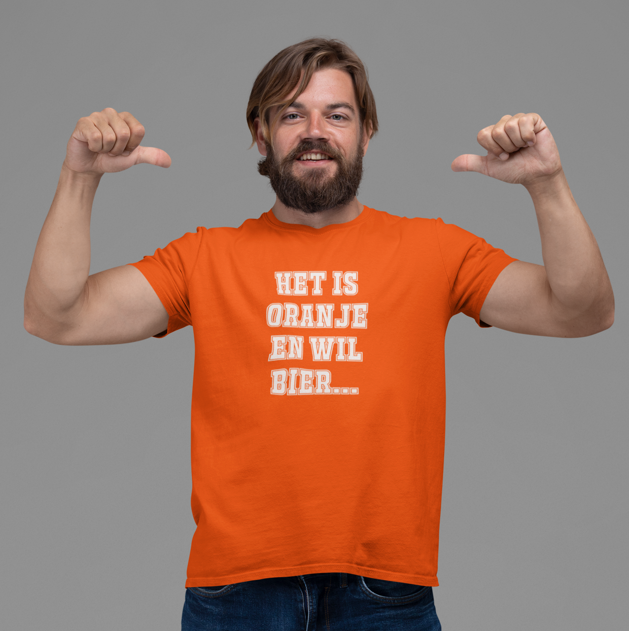 Het is Oranje en wil bier…t-shirt Laat zien dat jij onze Oranje helden support. Verkrijgbaar in de maten XS t/m 4XL