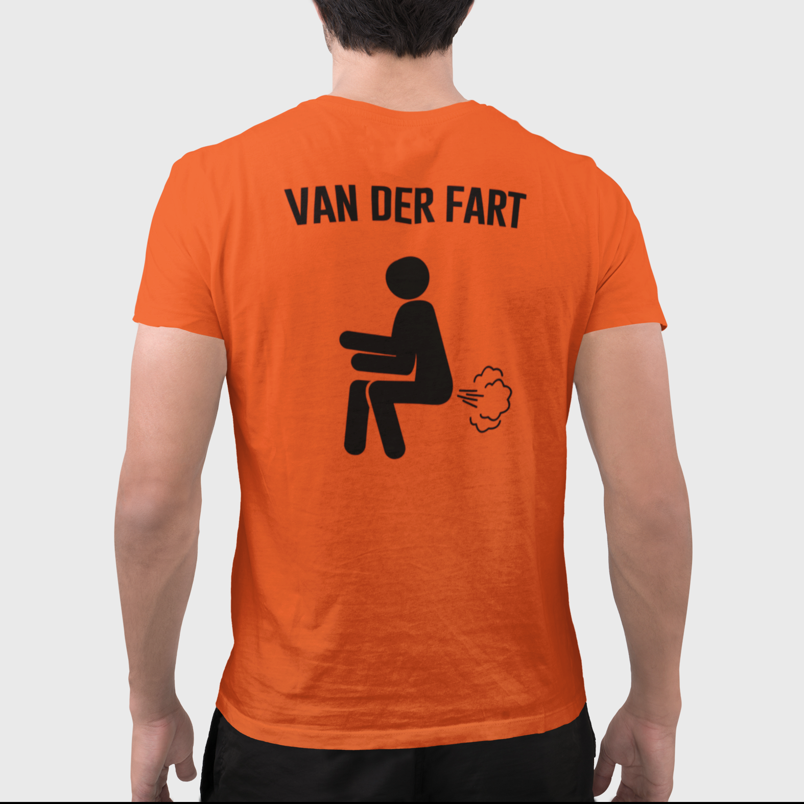 Het legendarische Van der Fart Oranje T-shirt! Ken je het moment nog? Toen van der Vaart een dikke scheet liet in de dug-out en alle spelers van het Nederlands Elftal vergingen van de stank? Geniaal voor themafeesten, in de kroeg en natuurlijk voor voetbalwedstrijden van Oranje!